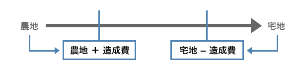 - 農地など~宅地の間のどの辺にあるか(土地そのものの物理的要因)