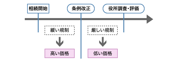 また、条例は頻繁に改正されることも多いため、評価時点(相続開始日)を明確に捉え、その時点の条例等を聴取しなければなりません。