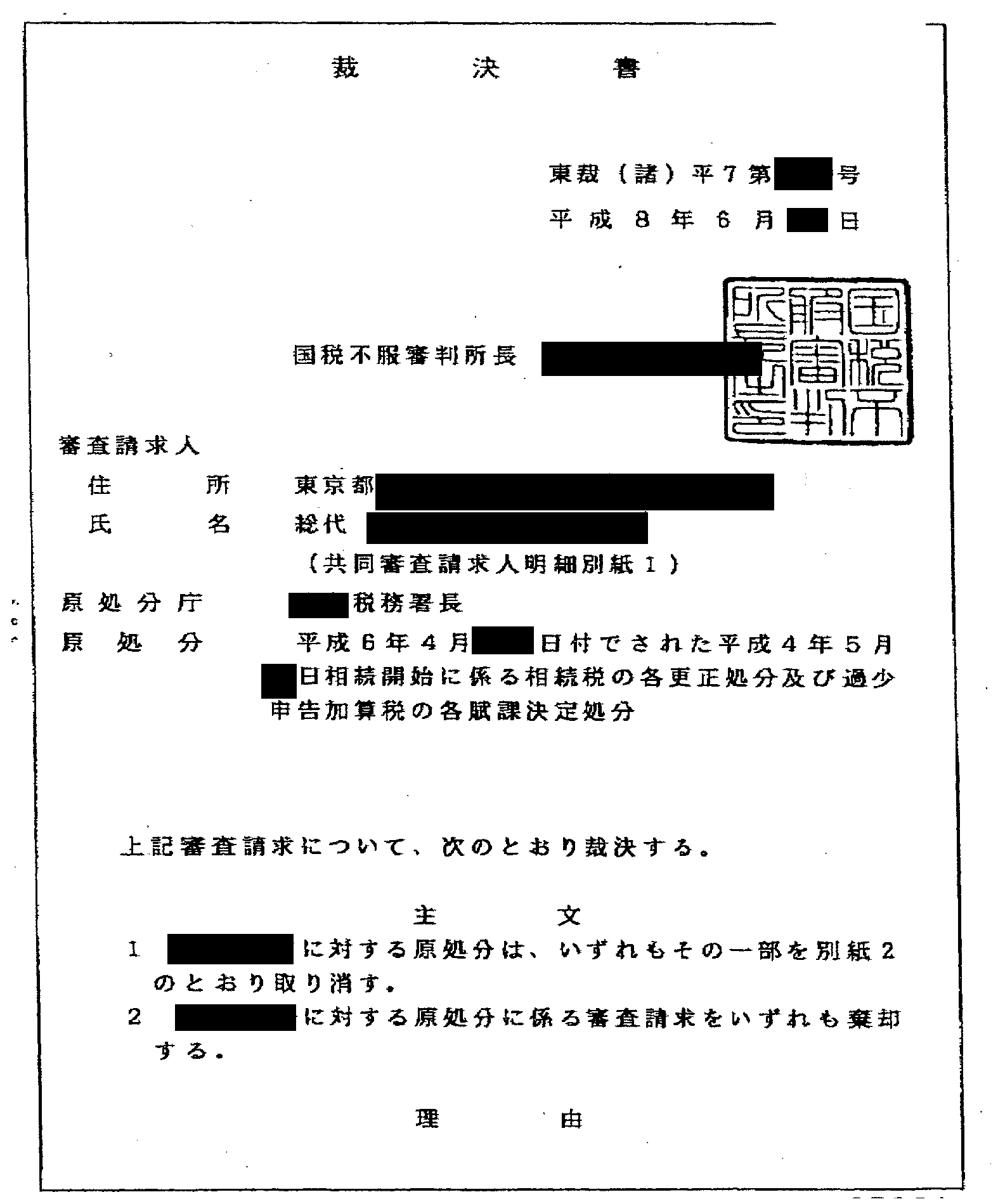 これは平成8年6月の国税不服審判所による裁決書です。