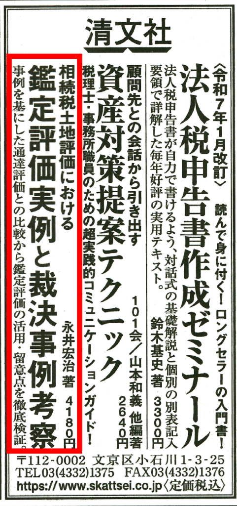 弊社不動産鑑定士、永井宏治の著書が2025年1月28日「日経新聞」に掲載されました!