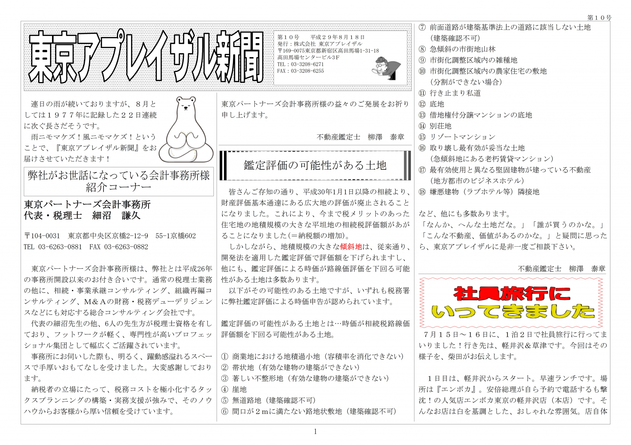 『東京アプレイザル新聞』第10号 /平成29年8月18日発行