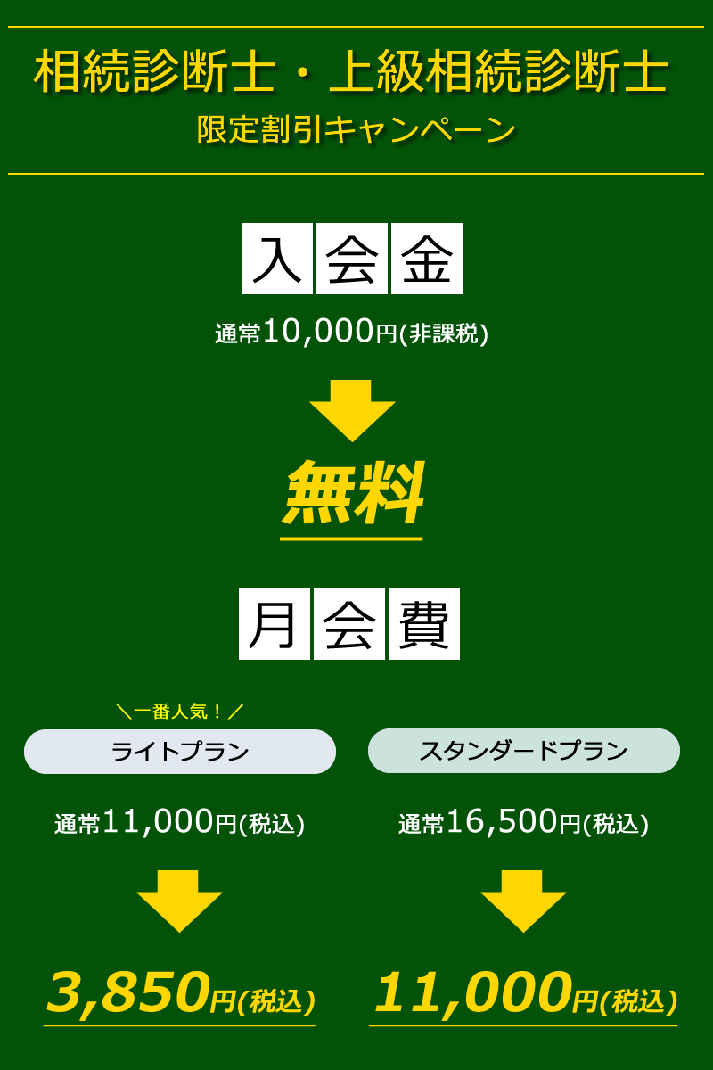 一般社団法人相続診断協会の「相続診断士」「上級相続診断士」の方限定のスペシャルキャンペーンです。