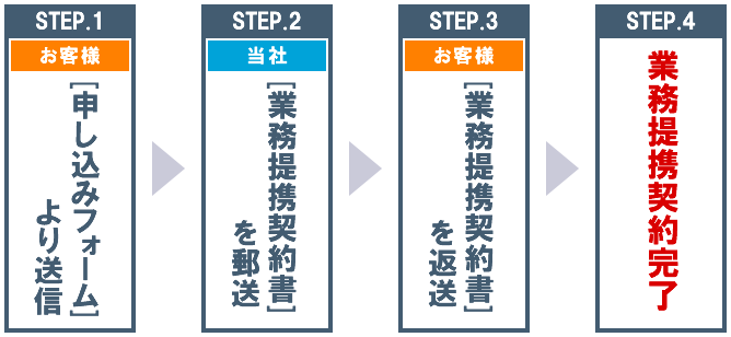 ステップ3:必要事項をご記入の上、弊社へ「業務提携契約書」をご返送ください。